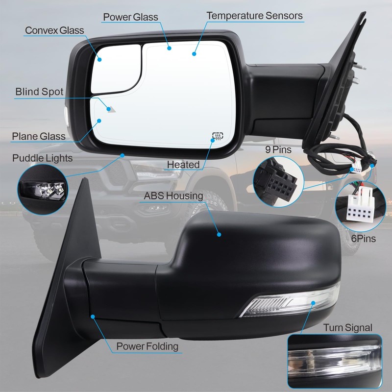 - 🔺Feature: Power Folding 丨Heated丨Power Glass丨Puddle Lights丨Turn Signal Lights丨Temperature Sensor丨Blind Spot