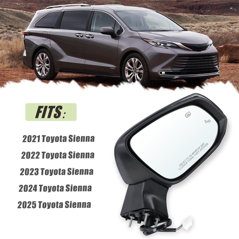 Lqito Right Passenger Side Door Mirror Compatible With 2021-2025 Toyota Sienna With Manual Folding Power Glass Heated Blind Spot Blakc Replace#8791508040(6Pins)