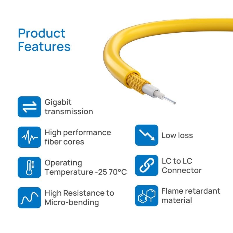 LC to LC Single Mode Duplex are used to connect LC / LC devices and are suitable for Gigabit Ethernet, video, multimedia, premise installations, fiber optics patch panels, fiber optic transceiver and fiber optic network, industrial, and military applications.