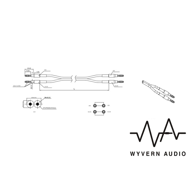 LR Set [Banana Plug Finished] By [WYVERN AUDIO] 24K Pure Copper Plug, Speaker Cable, Soldered, Blue, Set of 2 (1.5m)