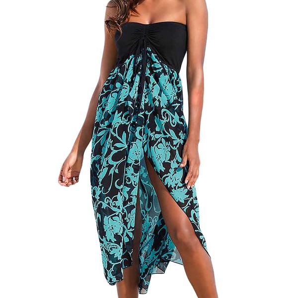 Lrady Eiffel Women's Boho Chiffon Off Shoulder Vacation Holiday Summer Beach Cover ups Long Dress Swimwear (X-Large,Black Turquoise)