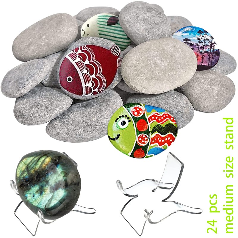 LRANFOW Rock Display Stand (Medium), 24 PCS Acrylic Display Stand Small Collectibles Stands for Rock Paintings Geodes Rock Mineral Agate Fossil Coral