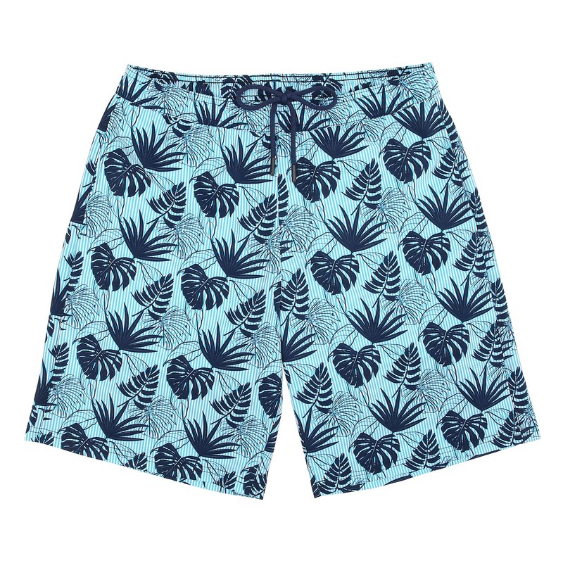 This swim trunk features a built-in compression liner that is stretchy, providing a comfortable fit and support while enjoying beach activities like swimming, wakeboarding, snorkeling, surfing, kayaking and many more. These swim trunks for men are made of a super-soft, anti-chafe fabric to prevent irritation for all day comfort in the sun. Moisture-wicking fabric will keep you dry while the mesh-lined compression liner provides perfect coverage while on the move for a cool and breathable feeling all day long. Men's board shorts have pockets on every side and one in the back with a hidden zipper to hold and secure belongings. Available in color Palm Leaf / Navy, size M.
