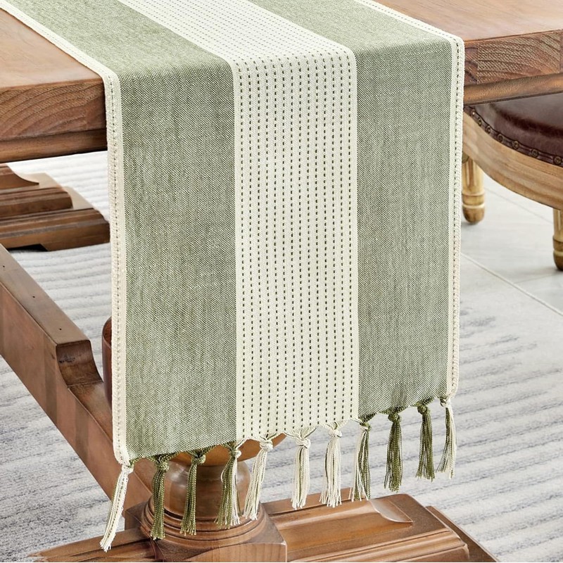 lrgnixs Table Runners with Tassels,183x33cm Cotton Linen Sage Green Table Runner for Dining Table,Braided Striped,Table Runners for Weddings Holiday Parties and Everyday Use