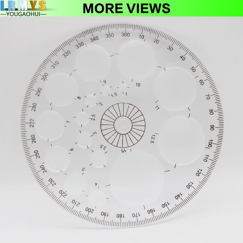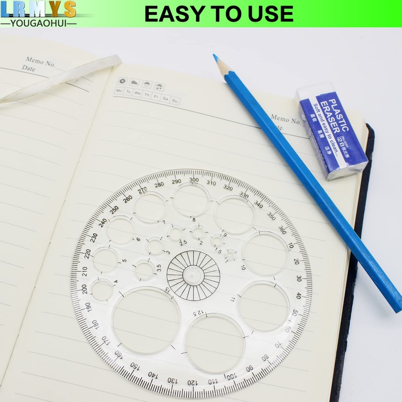 - 【HIGH QUALITY】- The 360 degrees protractor is made of high quality PVC plastic, sturdy and durable. The scale is printed clearly on the surface, not easy to fade. Light weight makes them more convenient to be used. The circle protractor ruler with 16 small circle, the radius range is from 1 to 15 mm that can help you drawing circle quickly and conveniently.