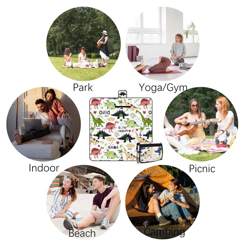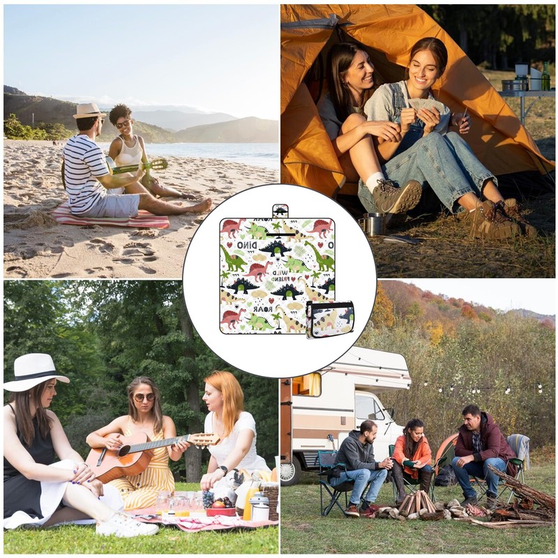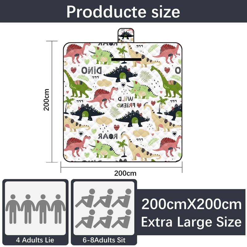 Lrocotanc Picnic Mat 2 m x 2 m (Dinosaur) - Large Foldable Waterproof Picnic Blanket - Outdoor Crawling Blanket & Beach Mat | Washable Picnic Blankets for Camping, Garden & Beach