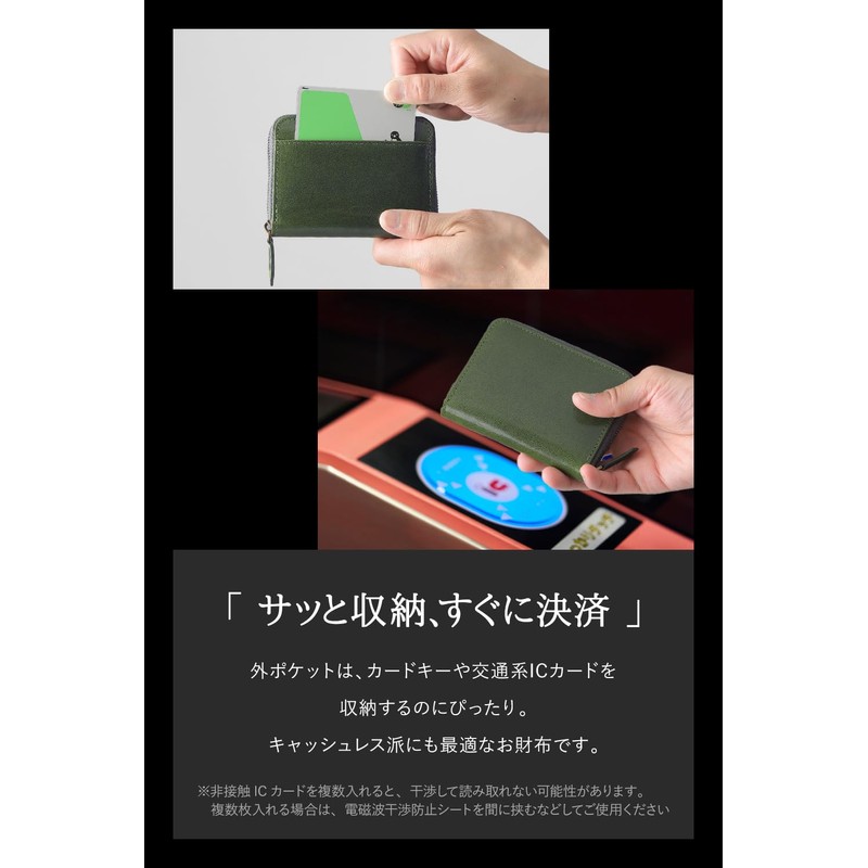 - Coins can be seen at a glance: Adopts a box shaped coin purse that opens easily and allows you to insert and remove coins. Quick Storage, Quick Payment: The outer pocket is perfect for storing card keys and traffic IC cards. This wallet is perfect for cashless people. If you put multiple contactless IC cards, it may be possible to read due to interference. When inserting multiple sheets, please use the sheet between the electromagnetic interference prevention. [Compact design] With a thickness of about 0.8 inch (2 cm) to hold the capacity well. The size fits easily in your pocket