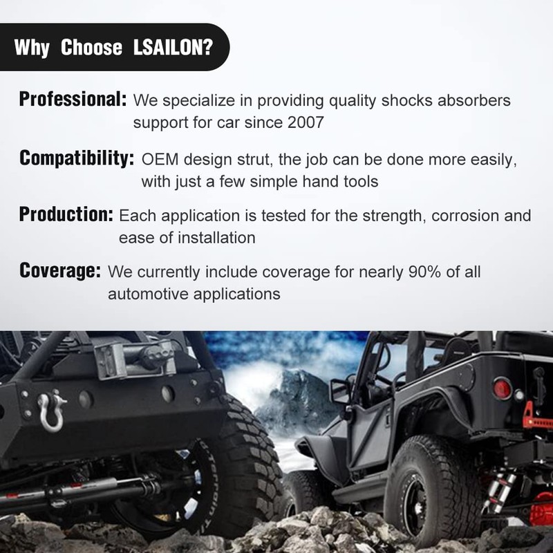 • REDUCE NOISE.PROVIDE COMFORT: Our LSAILON shocks struts USE CFM multi-lip piston rod oil seal combined with advanced manufacturing process,greatly reducing the abnormal noise,providing you quiet.comfortable travel environment