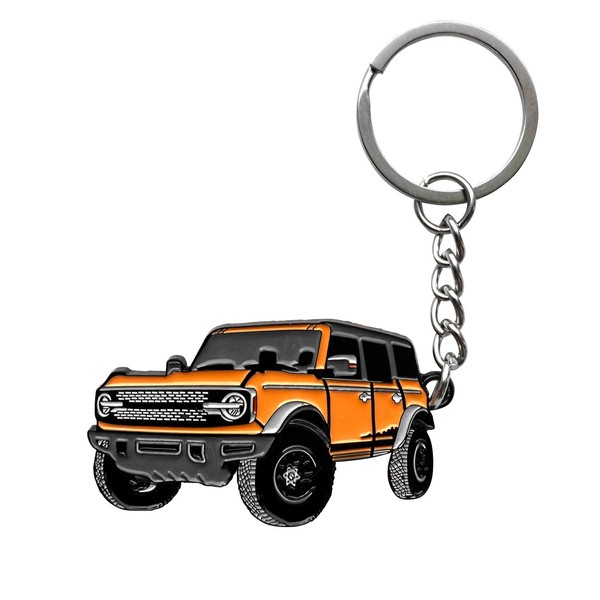 LSAUTO Car Keychain Compatible with Ford Bronco. Alloy Car Pattern Keychain. Key Accessory. (Orange)