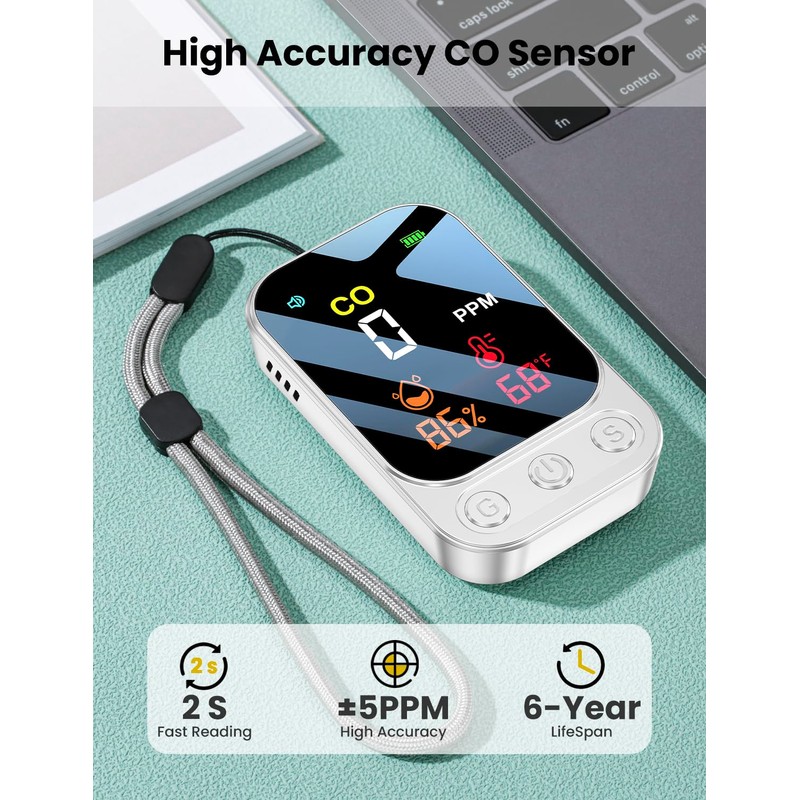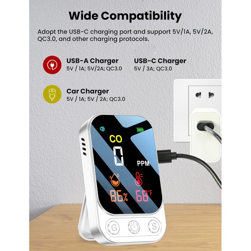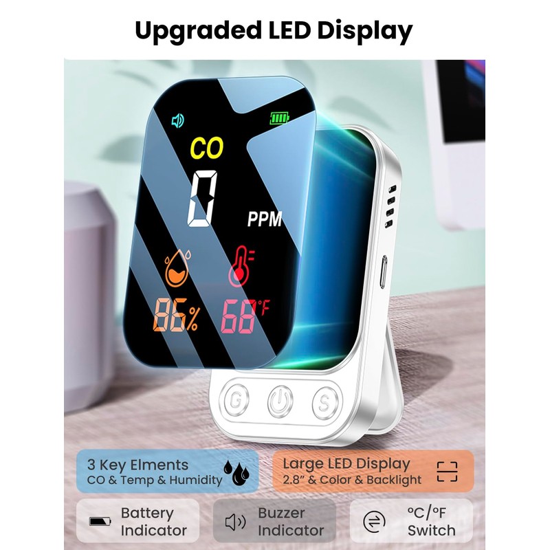 - 3-In-1 Portable Carbon Monoxide Detector: Compared with traditional carbon monoxide detectors, it can display temperature, humidity, and carbon monoxide concentration at the same time.