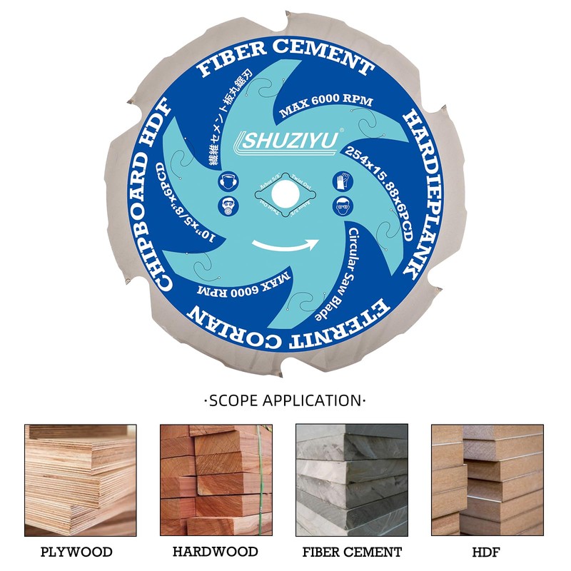 LSHUZIYU 10"(254mm)-6PCD, Arbor 5/8", Polycrystalline Diamond Tipped 6 PCD, Hardie Blade, Fiber Cement Circular Saw Blade