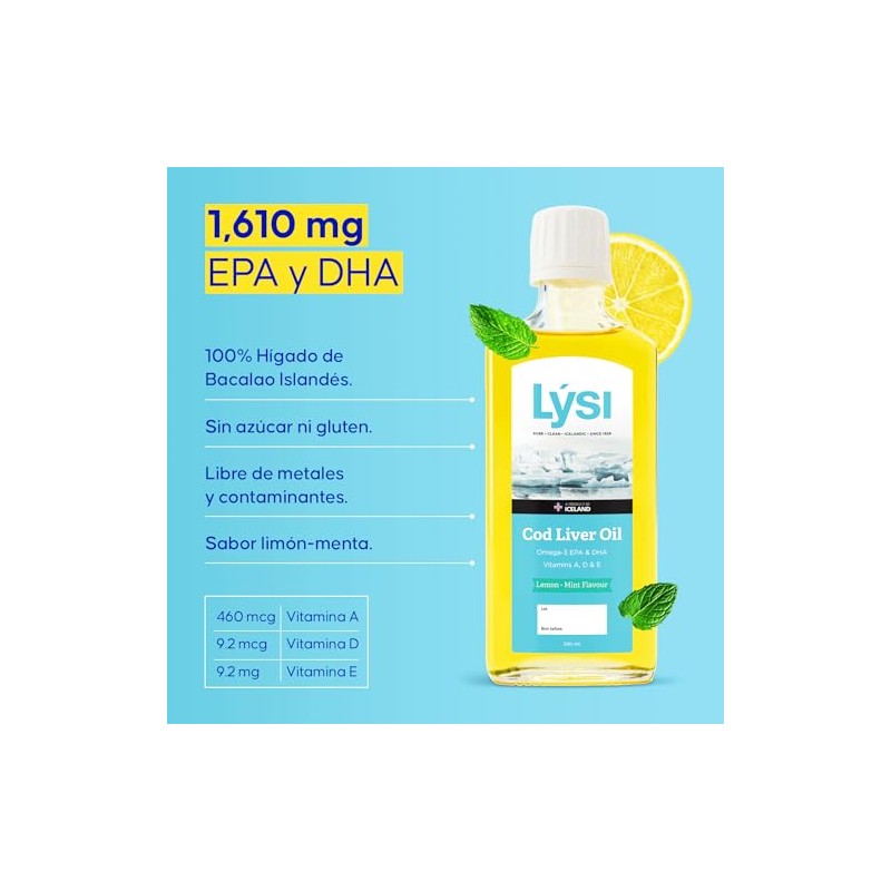 Lýsi - LÝSI, Omega 3 en Aceite de Bacalao, Contiene Vitaminas A, D3 y E, Sabor limón/menta, Para toda la familia, Contribuye a la salud cerebral, de la vista y ósea, Sin gluten y azúcar, 240 ml.. ✅ Diseño innovador que supera las expectativas. Tecnología avanzada y rendimiento superior. 📦 Entrega rápida y segura. Ideal para quienes buscan lo mejor en calidad y estilo. Producto auténtico con satisfacción total asegurada. ¡No te quedes sin el tuyo y aprovecha esta oportunidad única!