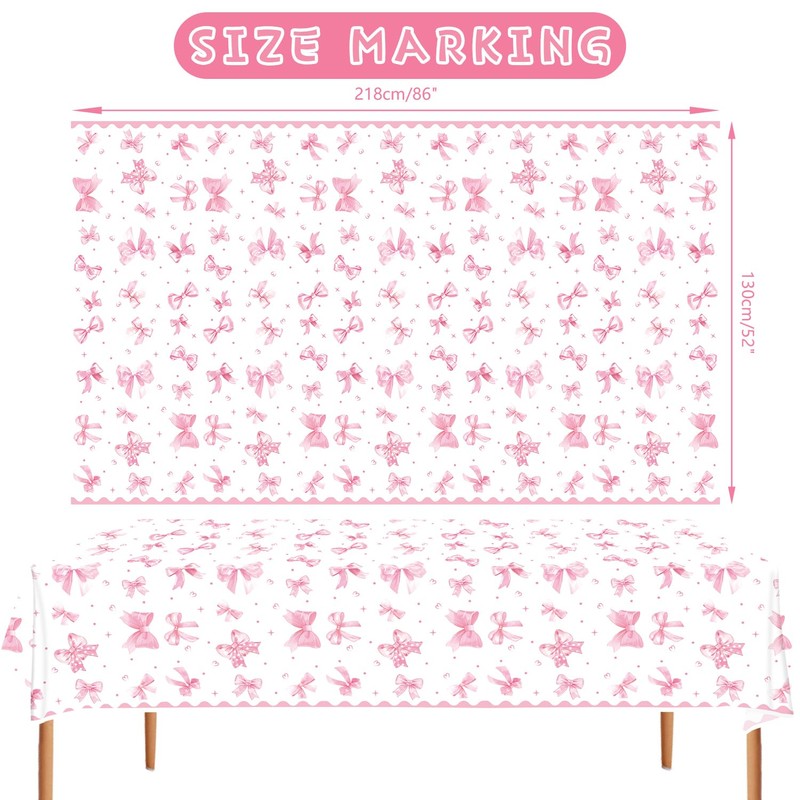 - Pink Bow-Themed Party Tablecloths: You will get 4 pieces of Pink Bow table cover/tablecloths, each of them measuring approx 86inch * 51inch / 220cm * 130cm, which is large enough for most tables, and the sufficient quantity can meet your decoration needs easily for your Bow-themed party.