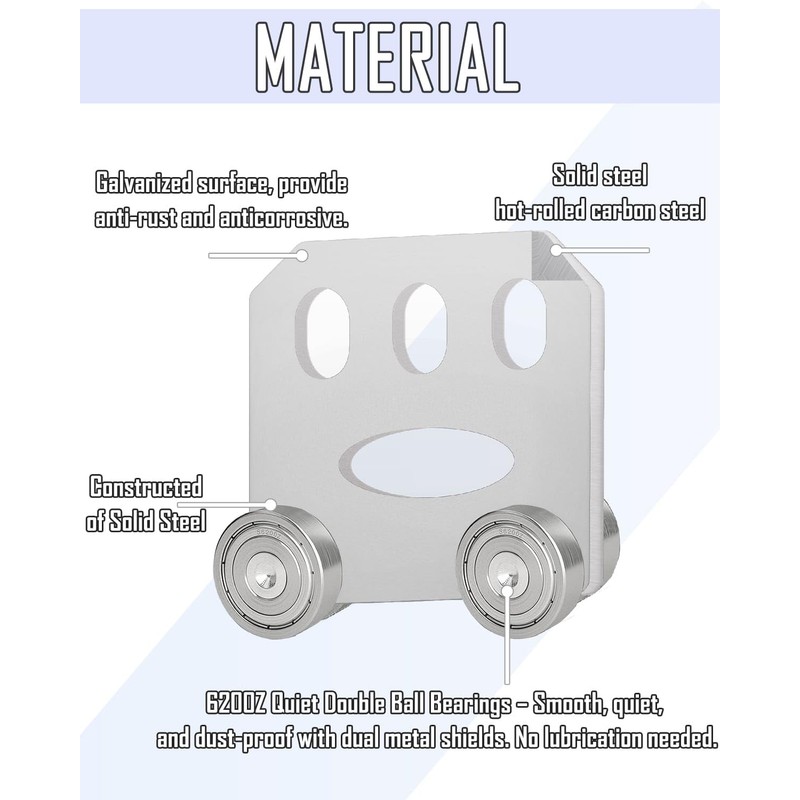 - Silent Gliding: Our Unistrut Trolley engineered for precision, with an alignment tolerance of just ± 0.01mm between the 4 wheels, and high-quality 6200Z bearings, ensuring whisper-quiet and seamless movement on beams. Perfect for noise-sensitive environments like workshops & studios. Dimensions: 3.5" (L) x 1.3" (W) x 3.3" (H), Pack of 2