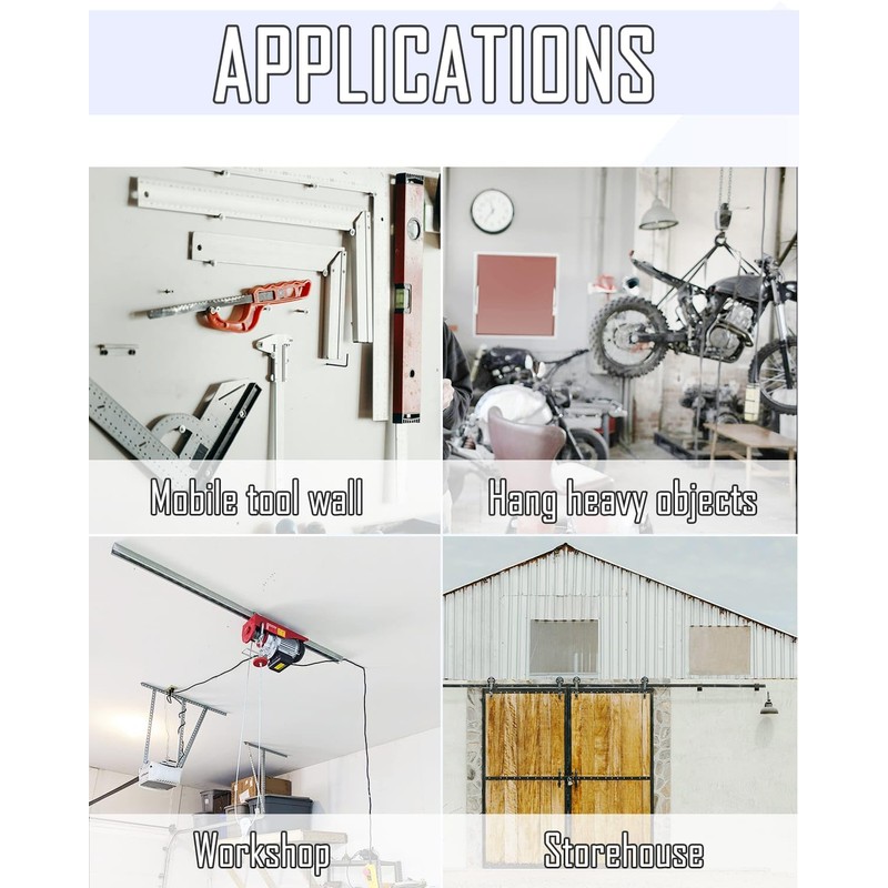 - VERSATILE APPLICATIONS: The Unistrut Trolley is perfect for sliding doors, garage doors farm barns, DIY workshops, truck beds, engine lifting, transmission support, ceiling trolley systems, electric hoists, garage winch systems, and overhead lifting systems. Its versatile design ensures reliable performance in both industrial and DIY settings