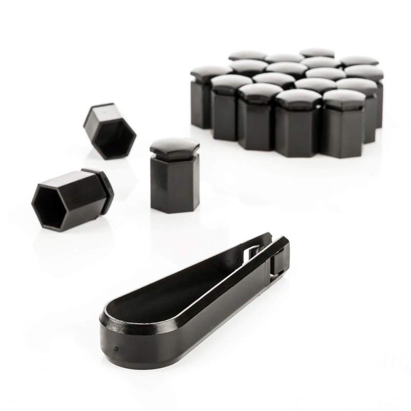 LST 20 x Wheel Bolt Cover Caps Hexagonal Rim Caps Long 17 mm Gloss Black