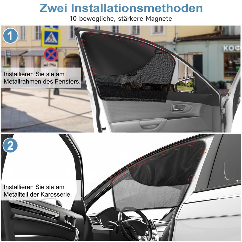 - Magnetic Parasols for Car Windows: the car side window parasols come with 10 movable strong magnets, which glide smoothly and are suitable for metal frame windows and metal frame doors. High-quality N40 magnets, strong adsorption capacity, strong stability, does not affect the window regulator