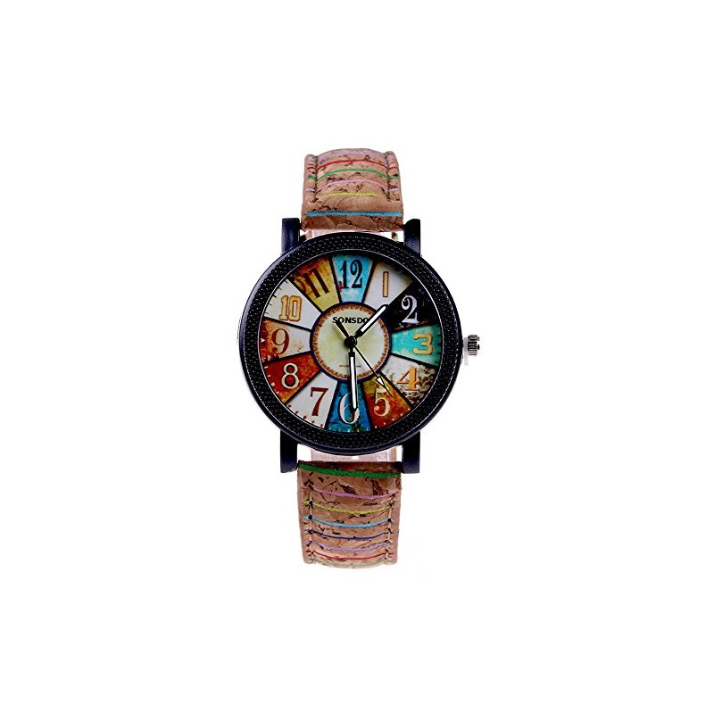 LSVTR Multicolor Denim Artificial Leather Strap Number Turntable Quartz Bracelet Wrist Watch