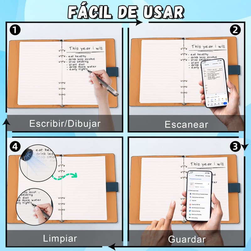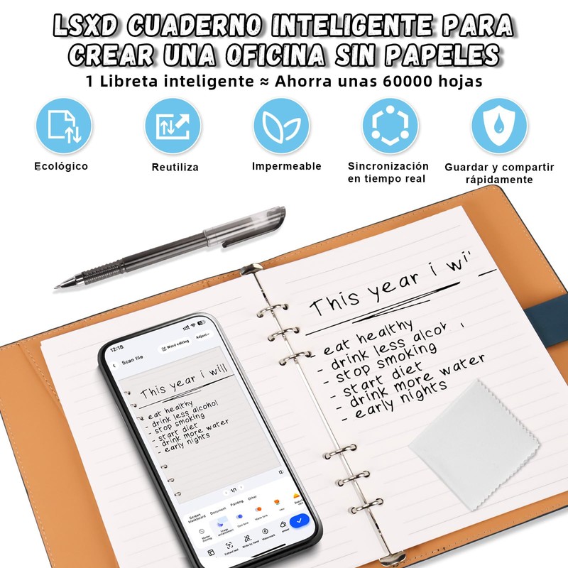 - 【Compatible con la nube】Este libreta inteligente combina el libreta de notas de papel con los dispositivos electrónicos, lo que proporciona una buena experiencia de escritura y te permite clasificar, buscar y enviar tus notas al mismo tiempo. Puedes grabar notas en cualquier momento, almacenarlas y compartirlas con la aplicación en la nube, como buzones de correo y softwares sociales. Dispones de PDF y JPG, entre otros formatos.