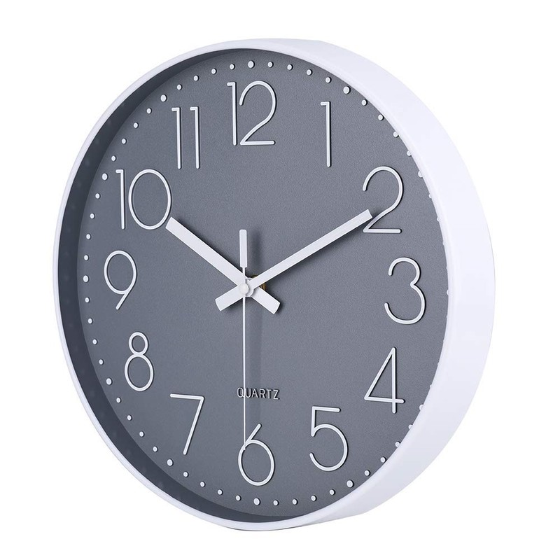 LSXD Reloj de Pared Grande de 12 Pulgadas, Relojes Pared de Cuarzo Redondo Silencioso, Sin Tictac, Wall Clock para Conica, Sala de Estar,la Escuela, la Oficina (Gris).