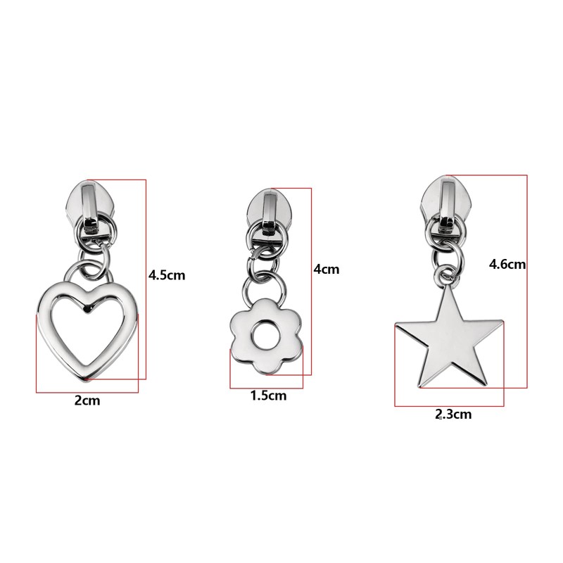 - Versatile Replacement Set: Includes 12 zipper pulls in various shapes like heart, star, and flower, perfect for replacing broken or worn-out zippers. Size: Star: 4.6x2.3cm, Flower: 4x1.5cm, Heart: 4.5x2cm.
