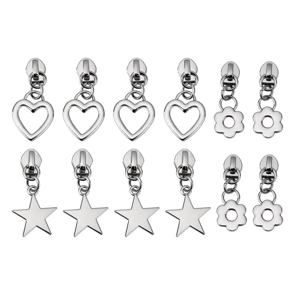 LT Easiyl 12Pcs Zipper Pull 5# Zipper Slider Replacement Part Zipper Pendant Heart Star Flower Metal Zip Mend for Coat Jacket Backpack Handbags