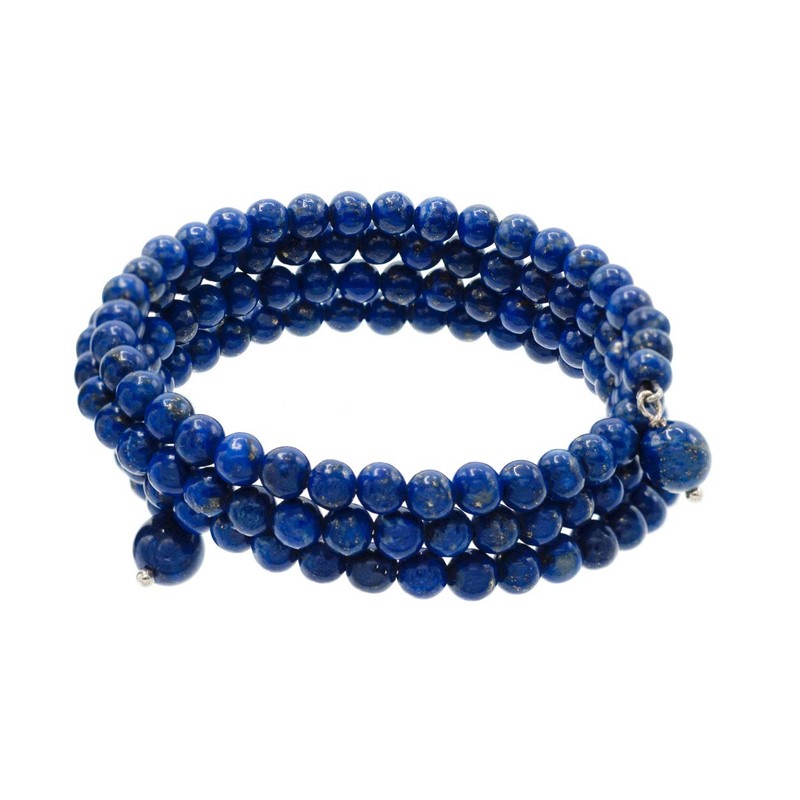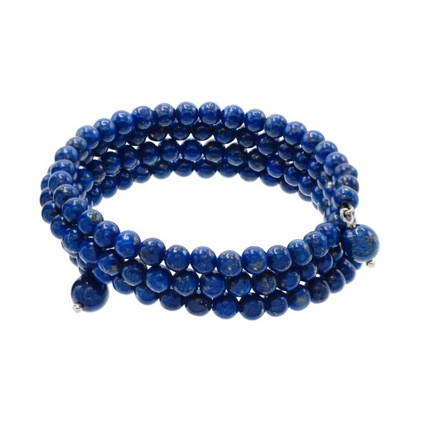 LTC Designs Adjustable 3 Strand 4mm Lapis Lazuli Coil Bracelet 7.5"