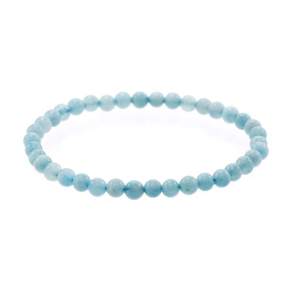 LTC Designs Shiny 3.5-4mm Round Aquamarine Stretch Bracelet, 6.5" for Women and Teens
