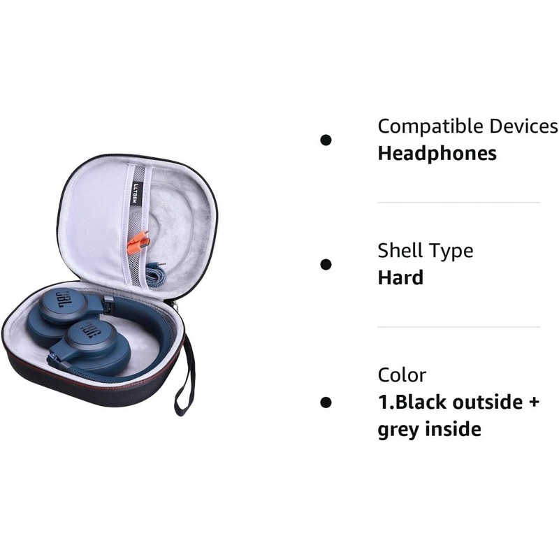 LTGEM EVA Hard Case for JBL Live 650BTNC / 400BT / 500BT /460NC and JBL Tune 510BT /700BT/710BT/760NC/750BTNC/ 660 BTNC / 560BT / 500BT / E45BT/ Bluetooth Wireless Headphone (1.Black outside + grey inside)