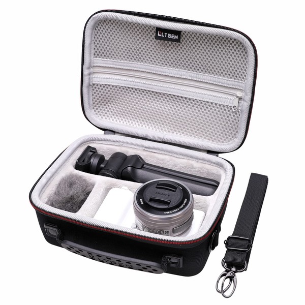 LTGEM - Funda rígida para cámara Vlog Sony Alpha ZV-E10, ZV-1, ZV-1F, ZV-1 II con correa para el hombro, compatible con kit de accesorios Vlogger, trípode y micrófono, bolsa protectora de viaje para