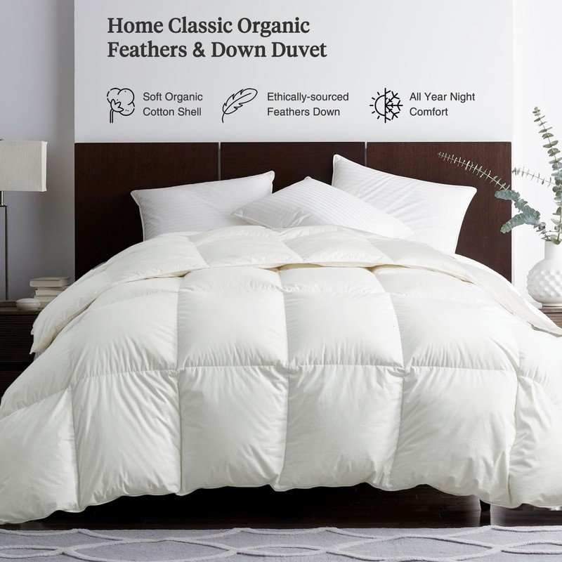 Ltinhome Feathers & Down Comforter, Organic Duvet Insert, 100% Cotton Shell, Ethically-sourced Feathers and Down Filler, All Season Warm, California King Size, White