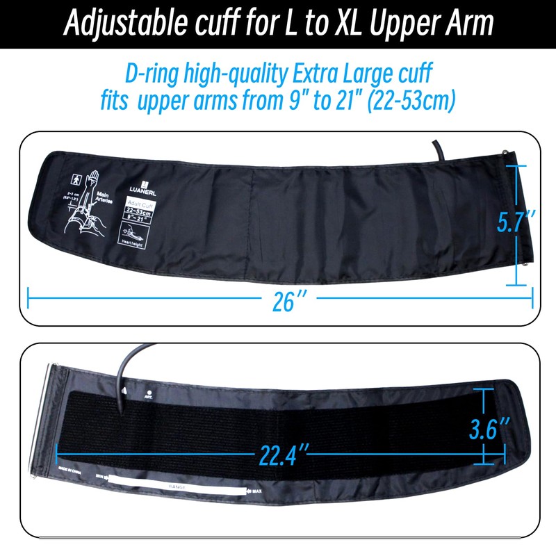 • ✅Comfortable design and XL size cuff - The included D-ring high-quality cuff can be easily attached to your own arm, and it is lined with soft fabric to ensure the patient's comfort during use. Cuff size fits adult upper arms from 9" to 21" (22-53cm).