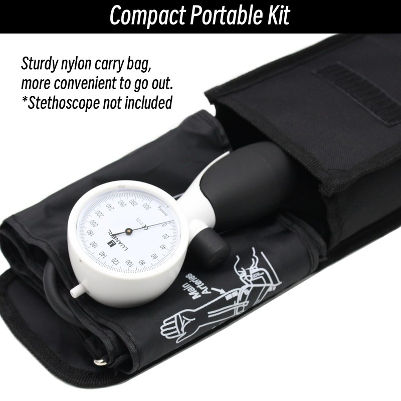 • ✅Sturdy Nylon Carrying Bag - The package comes with a black velcro nylon carrying bag large enough to hold the sphygmomanometer and cuff. Bags keep items together, clean and ready to use.