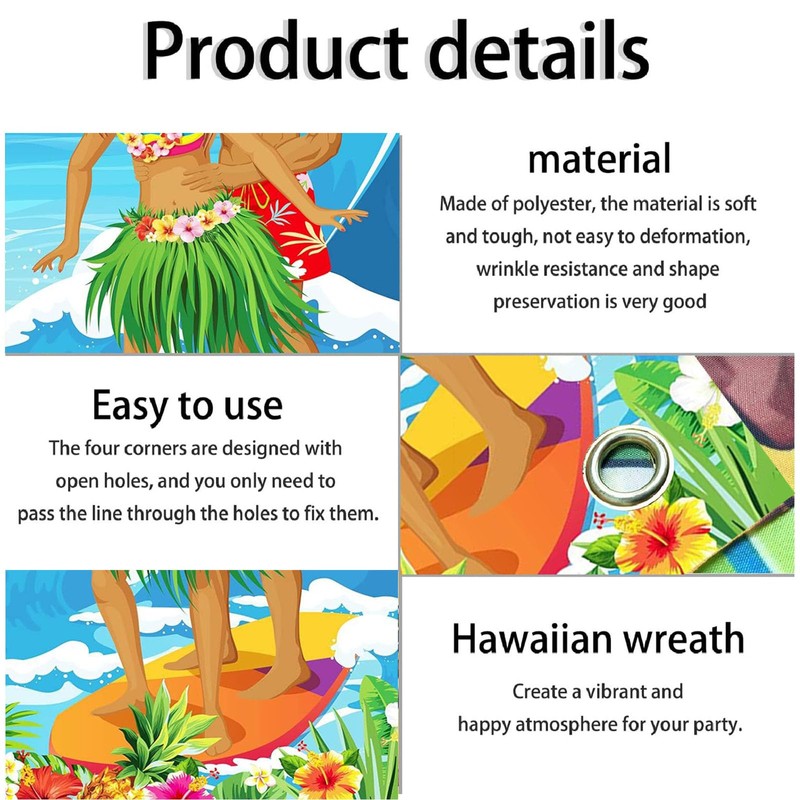 - 【EASY TO HANG AND USE】Our Party Decoration Hawaii Photo Backdrop comes with a 20ft/6m rope and copper assembly, allowing for quick and hassle-free installation. Simply hang it up through the copper grommet without the need for additional tools. Save time and energy on decorating, and make your party glamorous and fabulous in no time.