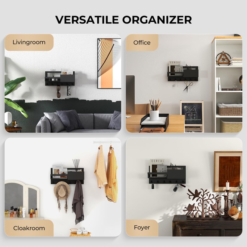 • Key and Mail Holder: This versatile wall mail organizer features a letter holder, a display shelf, and 6 hooks for easy access to your keys, bags, dog leashes, coat and everyday items.