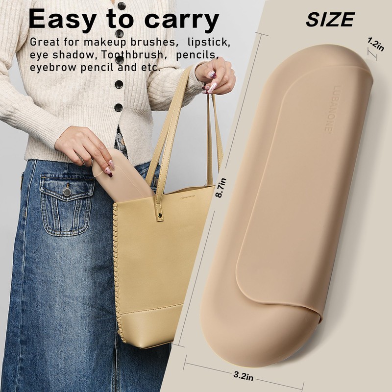 - Gran capacidad: tamaño de bolsa de maquillaje de silicona (8.1 x 3.2 x 1.2 pulgadas) suficiente para guardar todos tus cepillos de viaje. Es perfecto para día festivo, trabajo o uso diario.