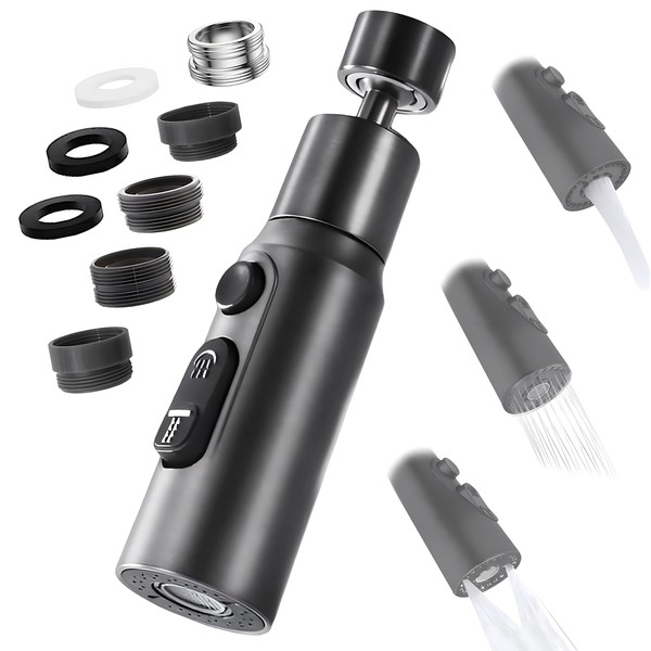 LUBEKAS Wasserhahn Aufsatz Schwenkbar, 360 Drehbarer mit 3 Modi Multifunktionaler Wasserhahn Luftsprudler, Wasserhahn Verl?ngerung mit 2 Sprhfunktion, Wassersparer fr Wasserhahn Brause Kche Bad (Schwarz)