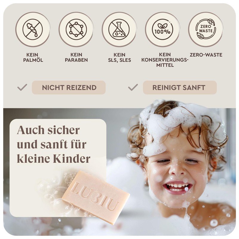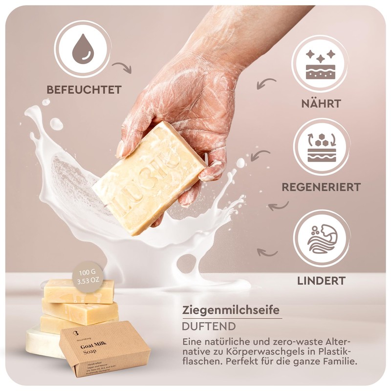 - Gentle and moisturising effect – the soap with goat's milk and natural oils creates a nourishing foam with a creamy fragrance. It gently cleanses and leaves skin soft, smooth and moisturised. Gentle enough for children.