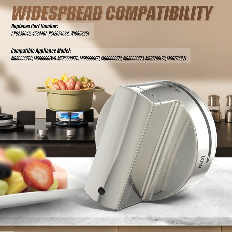 - 【Application】This control knob replacement replaces part number AP6238046, 4534467, PS12074638, W10858251 and is compatible with MGR6600FB0, MGR6600FW0, MGR6600FZ0, MGR6600FZ1 and many more.