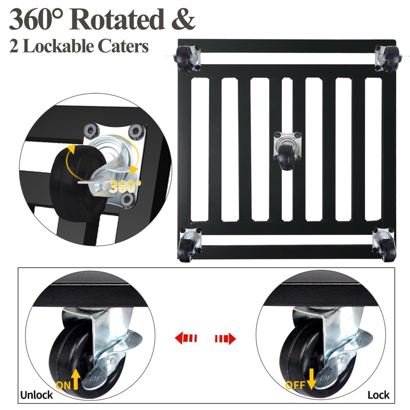 - Solid Materials: Different from other wooden or plastic products, our plant caddy is constructed from square metal tubes and coated with black baking paint. Its unique grid design provides exceptional load-bearing capacity and outstanding waterproof capabilities. The black finish complements the majority of decorations.
