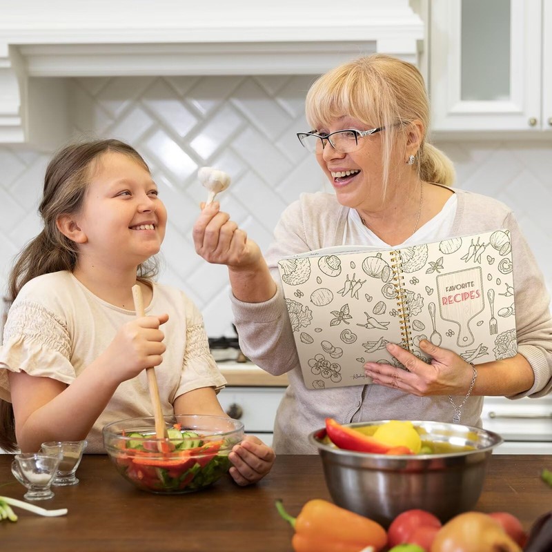 - Premium Quality - Made of premium 100gsm paper, this blank recipe notebook can effectively reduces ink through. The attractive and waterproof hardcover can prevent your favorite recipes from kitchen spills and splatters.