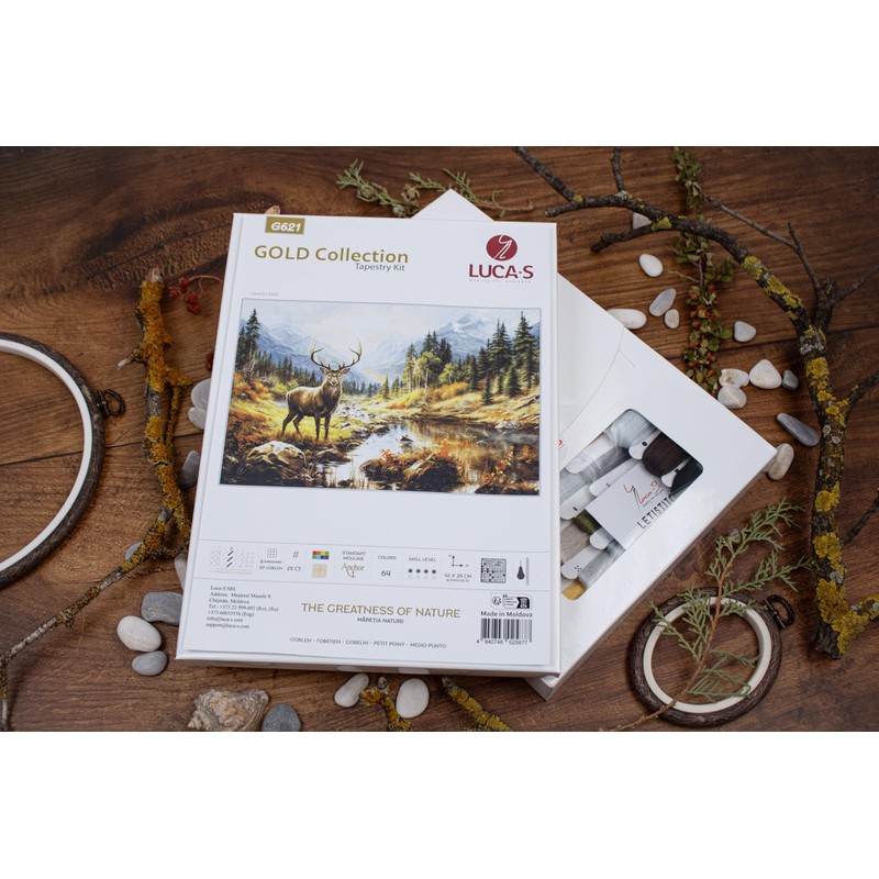 Luca-S Petit Point Kit Gold - The Greatness of Nature, G621, Counted Cross Stitch Kit for Adults, Needlecraft and Embroidery Kit