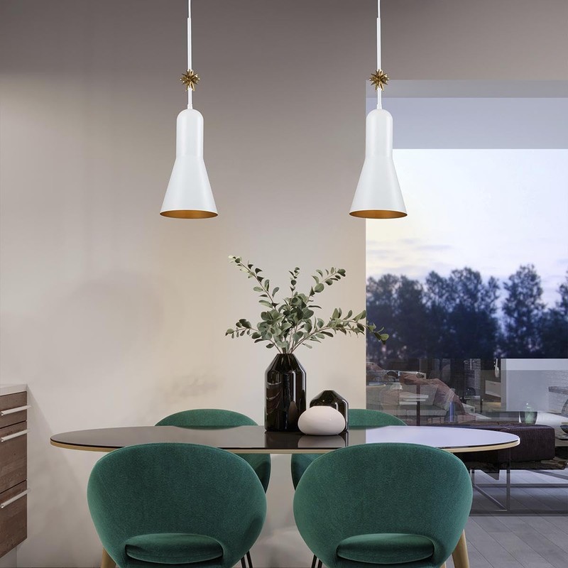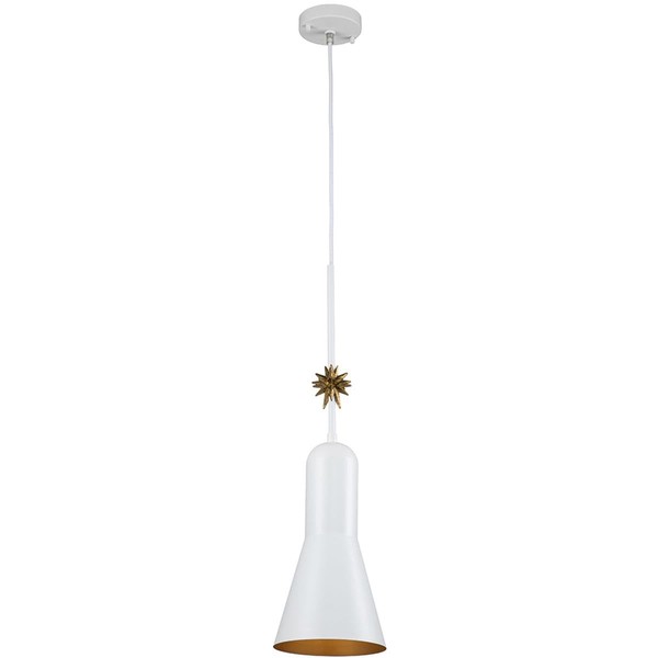 - Etoile Large 1 Light Pendant in White with unique gilded star accent. Adjustable height. Perfect all around the house.Features