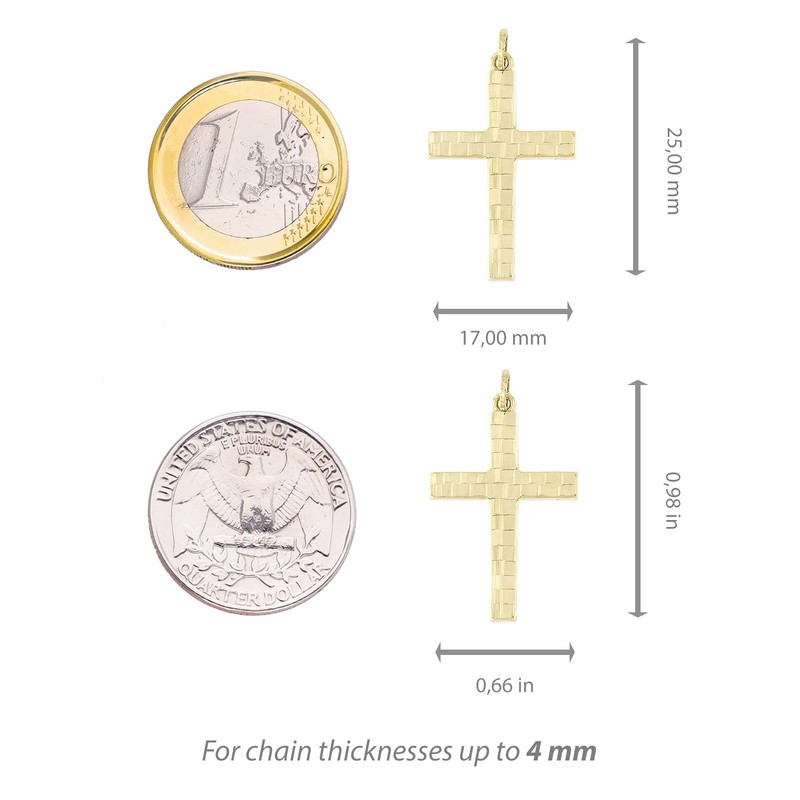 For those looking for a distinctive cross with a high aesthetic sense or as a valuable gift for Baptism, Communion, Confirmation, Mother's Day, Women's Day or Christmas. An exclusive thought for the people and the family you love so much, a symbol of love that remains over time. 14K Yellow Gold Pendant Charm in the shape of a Cross with "Wicker" effect.