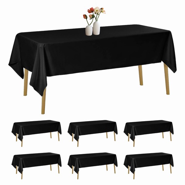 luccido 6 Pack Rectangle Tablecloth 60 x 120 Inches Black Table Cloth Stain and Wrinkle Resistant Washable Polyester Fabric Table Cover for Party, Wedding and Banquet Decoration