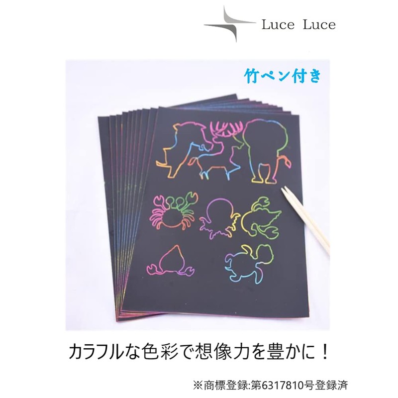 LuceLuce Scratch Art Pen, Scratch Paper, Adult, Plain, Scratch Board, Rainbow Paper, Colorful, Dedicated Bamboo Pen Set, Set of 30