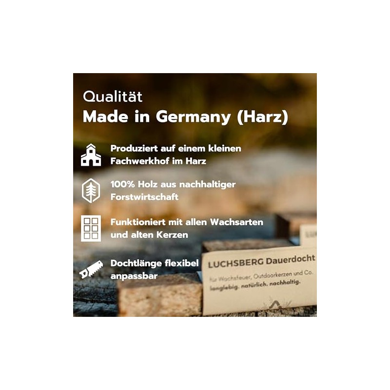 üî®Made in Germany - Handgefertigt im Harz‚õ∞Ô∏è: jeder einzelne Docht wird sorgf√§ltig von Hand hergestellt, um h√∂chste Qualit√§t zu gew√§hrleisten. Damit kannst du sicher sein, dass du ein Produkt erh√§ltst, das mit Liebe zum Detail gefertigt wurde