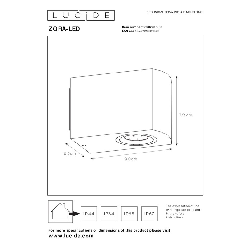 Lucide Zora, Aluminium, Black, GU10 5W 230V