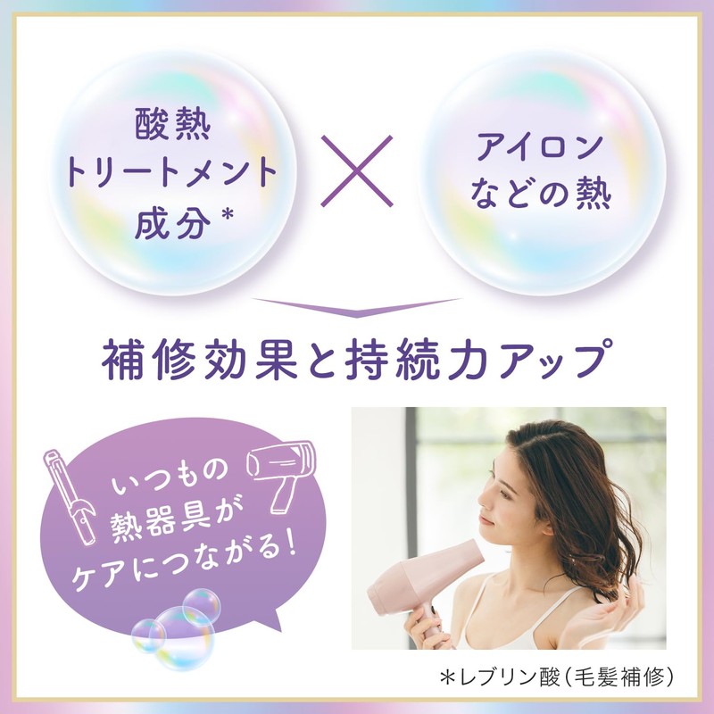 • Formulated with "Acid Heat Treatment" ingredients* that is popular in salons. *Levuric acid (hair repair)