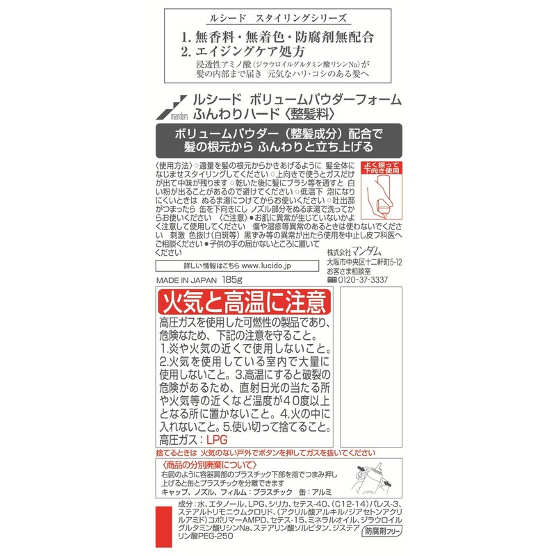 LUCIDO Volume Powder Foam, Fluffy Hard, 6.3 oz (185 g)